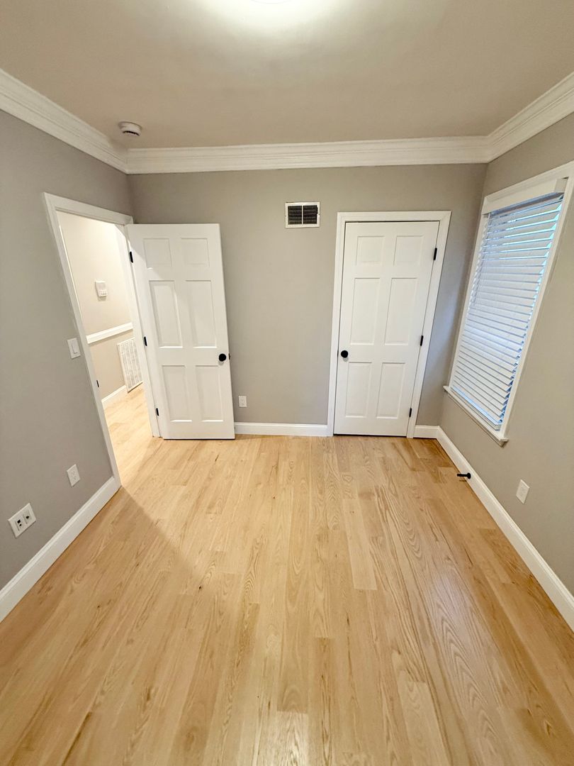 Step inside to discover stunning 5-inch white oak floors that flow throughout the open, sun-filled layout. The large chef’s kitchen features granite countertops, stainless steel appliances, and custom cabinetry—perfect for cooking and entertaining. The living room offers plenty of space for relaxation or hosting guests, while the sleek full bath showcases designer tile work and a custom glass-enclosed shower.