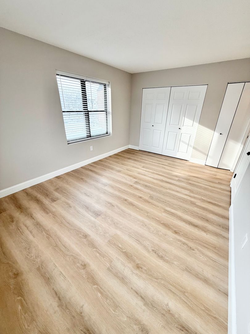 The layout includes 3 bedrooms, highlighted by a spacious primary suite with a private half bath. The unit offers abundant closet space throughout, providing excellent storage without compromising aesthetics.