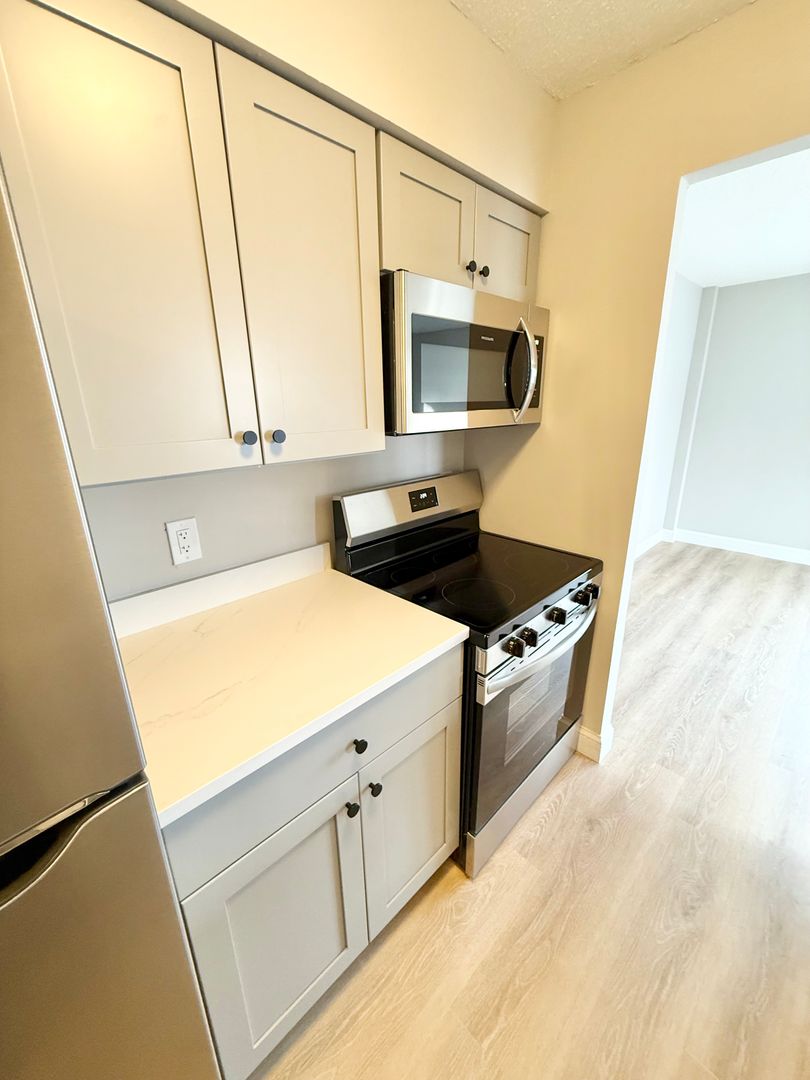 This beautifully renovated unit offers a rare combination of modern design, comfort, and convenience. Features include air conditioning, a high-efficiency super-capacity washer and dryer, and a thoughtfully designed kitchen with stunning white quartz countertops and brand-new stainless steel appliances.